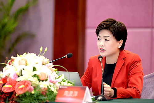 图为陶灵萍董事长在2016年销售工作会议中发表讲话