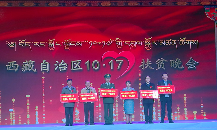 2 0 1 6 年1 0 月1 7 日, “ 西藏自治区1 0 • 1 7 扶贫晚会” 隆重举行。西藏自治区党委副书记、自治区主席、自治区扶贫开发领导小组常务副组长洛桑江村, 区党委常委、自治区常务副主席、自治区脱贫攻坚指挥部总指挥长丁业现,自治区副主席、自治区脱贫攻坚指挥部副总指挥长其美仁增出席晚会,并见证企业支持就业扶贫框架合作协议签订和爱心捐助活动。灵康药业集团股份有限公司副总经理、董事会秘书周军代表公司参加了此次活动。高原大地,各族兄弟姐妹手挽手、肩并肩,用真情谱写着爱与奉献的感人诗篇。