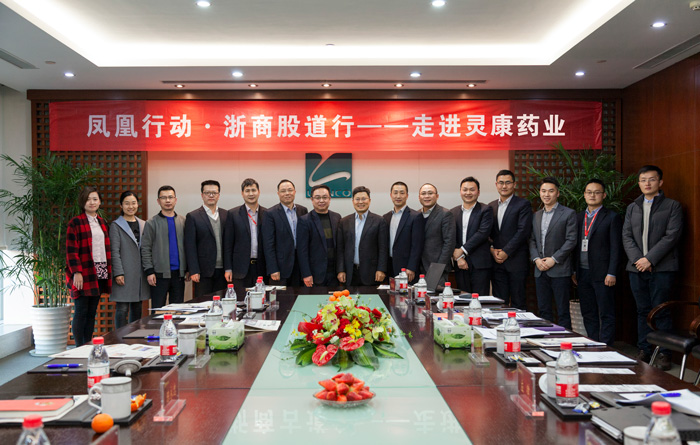 2019年3月14日下午,浙商证券“凤凰行动·浙商股道行——走进上市公司”专题调研团一行9人,在浙商证券董事长吴承根的带领下,到访灵康药业集团杭州总部。灵康药业集团董事、副总裁胡建荣、陶小刚,集团首席技术顾问应律博士,以及集团董事会秘书兼财务总监张俊珂等高层管理团队参加座谈。