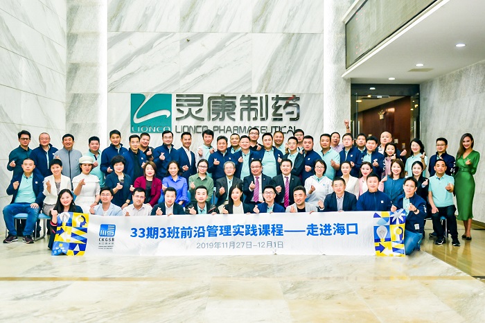 2019 年 11 月 28 日,长江商学院 EMBA33期 3 班前沿管理实践课程走进灵康药业集团参观交流。此次活动以“战略发展和转型创新”为主题,由长江商学院副院长、管理学教授阎爱民博士、主任钟有丽老师带队,共有 60 余名学员参加,均为各企业高层管理人员。