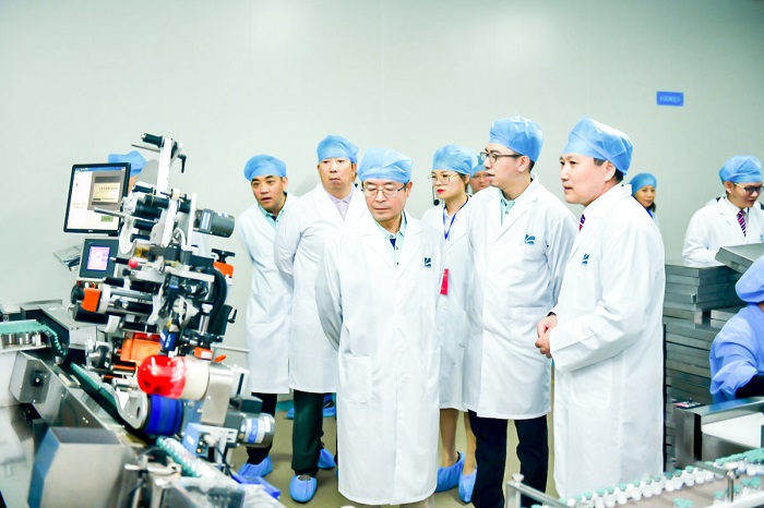 在灵康药业集团董事、常务副总经理胡建荣等公司领导们的陪同下,全体师生参观了我公司展示中心,深入了解研发、生产领域,并对公司所获诸多荣誉表示赞赏。随后,大家集体来到冻干车间、小容量注射剂车间进行参观,近距离感受了现代化制药车间高速生产作业场景,充分展示了企业强劲的生产实力。