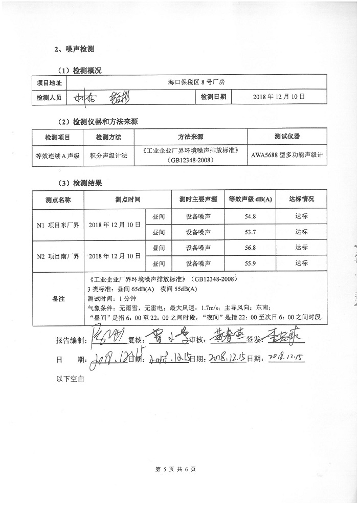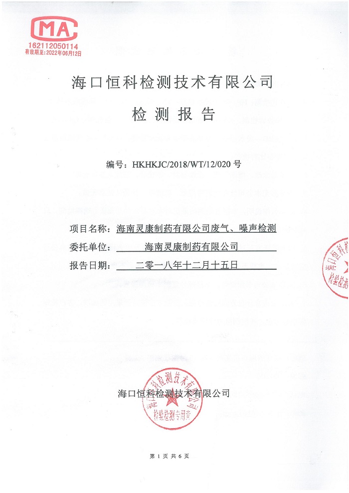灵康药业集团海南灵康制药有限公司保税区厂区废气、噪声检测报告