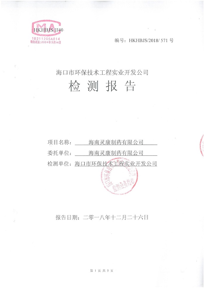 下一篇:灵康药业集团海南灵康制药有限公司保税区厂区废气、噪声检测报告